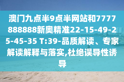 澳門九點(diǎn)半9點(diǎn)半網(wǎng)站和7777888888新奧精準(zhǔn)22-15-49-25-45-35 T:39-品質(zhì)解讀、專家解讀解釋與落實(shí),杜絕誤導(dǎo)性誘導(dǎo)