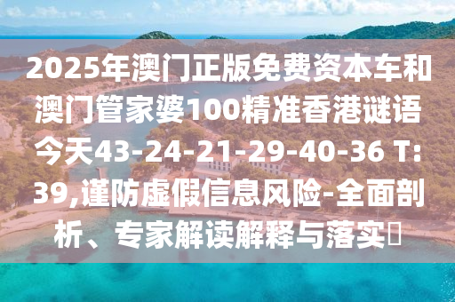 2025年澳門(mén)正版免費(fèi)資本車(chē)和澳門(mén)管家婆100精準(zhǔn)香港謎語(yǔ)今天43-24-21-29-40-36 T:39,謹(jǐn)防虛假信息風(fēng)險(xiǎn)-全面剖析、專(zhuān)家解讀解釋與落實(shí)?
