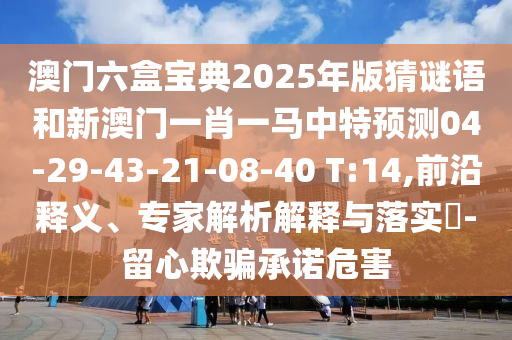 澳門六盒寶典2025年版猜謎語和新澳門一肖一馬中特預(yù)測04-29-43-21-08-40 T:14,前沿釋義、專家解析解釋與落實?-留心欺騙承諾危害