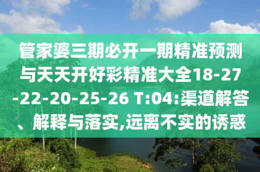 管家婆三期必開一期精準預測與天天開好彩精準大全18-27-22-20-25-26 T:04的渠道解答、解釋與落實