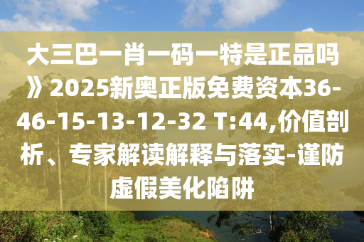 大三巴一肖一碼一特是正品嗎》2025新奧正版免費(fèi)資本36-46-15-13-12-32 T:44,價(jià)值剖析、專家解讀解釋與落實(shí)-謹(jǐn)防虛假美化陷阱