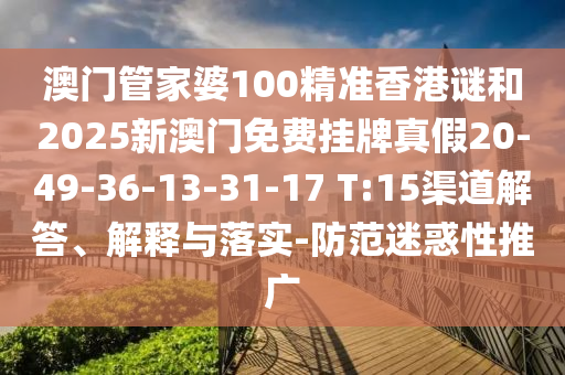 澳門管家婆100精準(zhǔn)香港謎和2025新澳門免費(fèi)掛牌真假20-49-36-13-31-17 T:15渠道解答、解釋與落實(shí)-防范迷惑性推廣