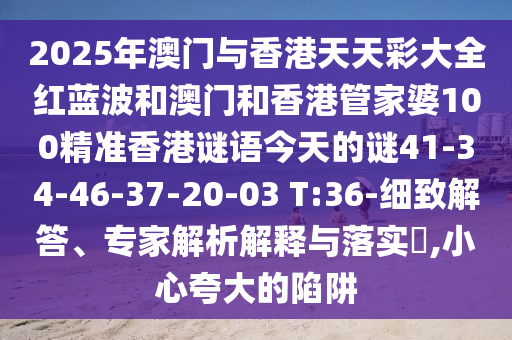 2025年澳門與香港天天彩大全紅藍(lán)波和澳門和香港管家婆100精準(zhǔn)香港謎語今天的謎41-34-46-37-20-03 T:36-細(xì)致解答、專家解析解釋與落實(shí)?,小心夸大的陷阱