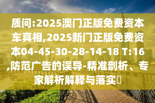質(zhì)問:2025澳門正版免費(fèi)資本車真相,2025新門正版免費(fèi)資本04-45-30-28-14-18 T:16,防范廣告的誤導(dǎo)-精準(zhǔn)剖析、專家解析解釋與落實(shí)?