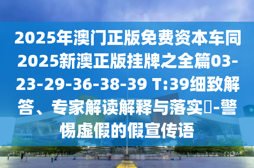 2025年澳門正版免費資本車同2025新澳正版掛牌之全篇03-23-29-36-38-39 T:39細致解答、專家解讀解釋與落實?-警惕虛假的假宣傳語