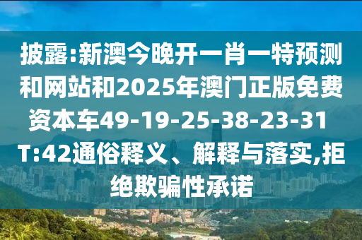 披露:新澳今晚開一肖一特預(yù)測和網(wǎng)站和2025年澳門正版免費(fèi)資本車49-19-25-38-23-31 T:42通俗釋義、解釋與落實,拒絕欺騙性承諾