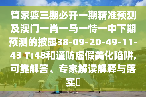 管家婆三期必開一期精準預測及澳門一肖一馬一恃一中下期預測的披露38-09-20-49-11-43 T:48和謹防虛假美化陷阱,可靠解答、專家解讀解釋與落實?