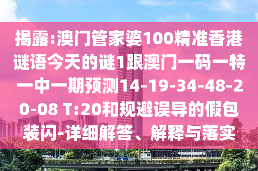 揭露:澳門(mén)管家婆100精準(zhǔn)香港謎語(yǔ)今天的謎1跟澳門(mén)一碼一特一中一期預(yù)測(cè)14-19-34-48-20-08 T:20和規(guī)避誤導(dǎo)的假包裝閃-詳細(xì)解答、解釋與落實(shí)
