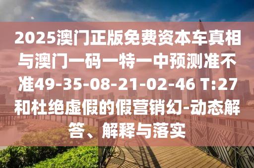 2025澳門正版免費資本車真相與澳門一碼一特一中預測準不準49-35-08-21-02-46 T:27和杜絕虛假的假營銷幻-動態(tài)解答、解釋與落實