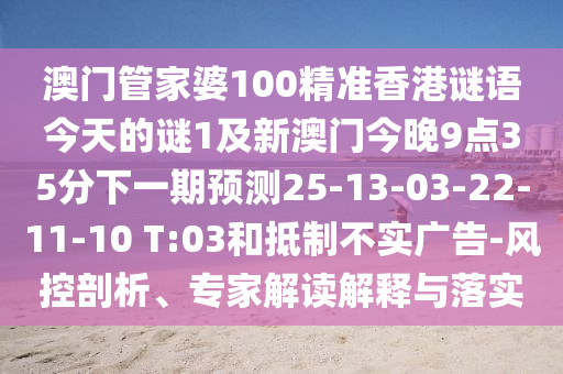 澳門管家婆100精準(zhǔn)香港謎語今天的謎1及新澳門今晚9點35分下一期預(yù)測25-13-03-22-11-10 T:03和抵制不實廣告-風(fēng)控剖析、專家解讀解釋與落實