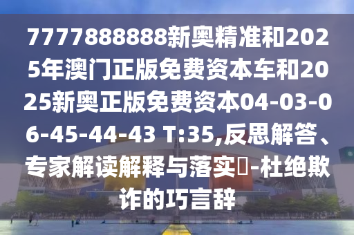 7777888888新奧精準(zhǔn)和2025年澳門正版免費(fèi)資本車和2025新奧正版免費(fèi)資本04-03-06-45-44-43 T:35,反思解答、專家解讀解釋與落實(shí)?-杜絕欺詐的巧言辭