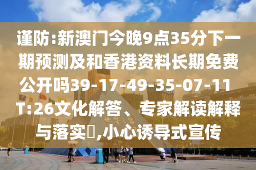 謹(jǐn)防:新澳門今晚9點(diǎn)35分下一期預(yù)測及和香港資料長期免費(fèi)公開嗎39-17-49-35-07-11 T:26文化解答、專家解讀解釋與落實(shí)?,小心誘導(dǎo)式宣傳