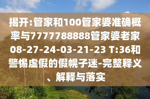 揭開:管家和100管家婆準(zhǔn)確概率與7777788888管家婆老家08-27-24-03-21-23 T:36和警惕虛假的假幌子迷-完整釋義、解釋與落實