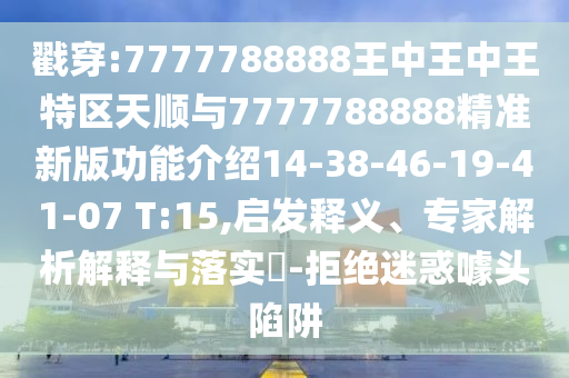 戳穿:7777788888王中王中王特區(qū)天順與7777788888精準(zhǔn)新版功能介紹”等關(guān)鍵詞的釋義、解析與落實(shí),警惕虛假宣傳
