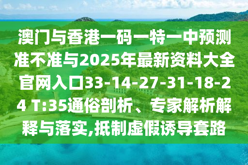 澳門(mén)與香港一碼一特一中預(yù)測(cè)準(zhǔn)不準(zhǔn)與2025年最新資料大全官網(wǎng)入口33-14-27-31-18-24 T:35通俗剖析、專(zhuān)家解析解釋與落實(shí),抵制虛假誘導(dǎo)套路