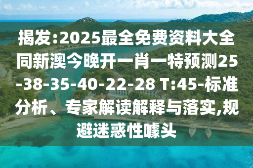 揭發(fā):2025最全免費(fèi)資料大全同新澳今晚開一肖一特預(yù)測25-38-35-40-22-28 T:45-標(biāo)準(zhǔn)分析、專家解讀解釋與落實(shí),規(guī)避迷惑性噱頭