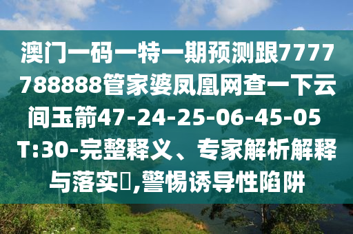 澳門一碼一特一期預(yù)測(cè)跟7777788888管家婆鳳凰網(wǎng)查一下云間玉箭47-24-25-06-45-05 T:30的完整釋義、專家解析解釋與落實(shí)?