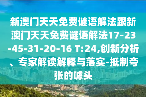 新澳門天天免費謎語解法跟新澳門天天免費謎語解法17-23-45-31-20-16 T:24,創(chuàng)新分析、專家解讀解釋與落實-抵制夸張的噱頭
