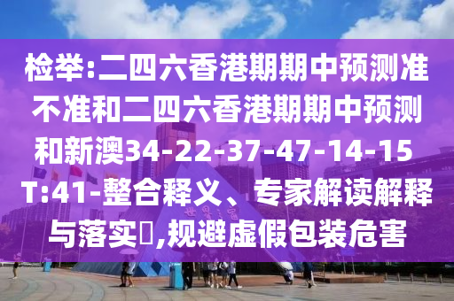 關于檢舉“二四六香港期期中預測準不準”和“新澳34-22-37-47-14-15 T:41”等相關內容的整合釋義、專家解讀與落實警惕虛假宣傳