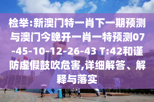 檢舉:新澳門特一肖下一期預(yù)測與澳門今晚開一肖一特預(yù)測07-45-10-12-26-43 T:42和謹(jǐn)防虛假鼓吹危害,詳細(xì)解答、解釋與落實(shí)