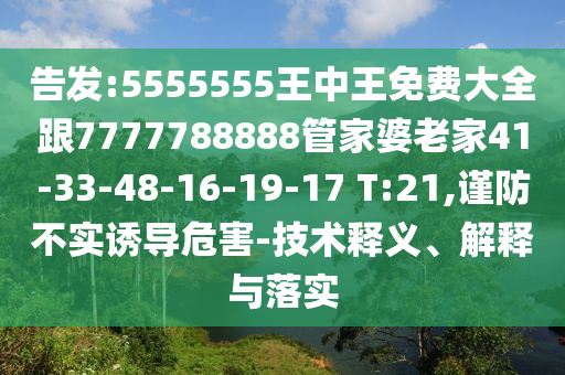 告發(fā):5555555王中王免費(fèi)大全跟7777788888管家婆老家41-33-48-16-19-17 T:21”的技術(shù)釋義、解釋與落實(shí),以及謹(jǐn)防不實(shí)誘導(dǎo)危害的解析