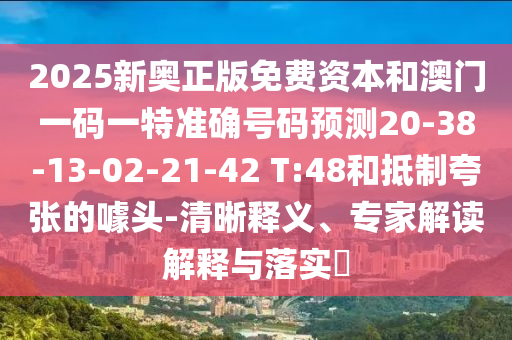 2025新奧正版免費資本和澳門一碼一特準(zhǔn)確號碼預(yù)測20-38-13-02-21-42 T:48和抵制夸張的噱頭-清晰釋義、專家解讀解釋與落實?