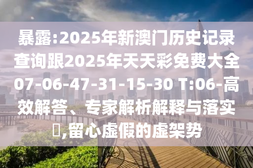 暴露:2025年新澳門歷史記錄查詢跟2025年天天彩免費(fèi)大全07-06-47-31-15-30 T:06-高效解答、專家解析解釋與落實(shí)?,留心虛假的虛架勢(shì)