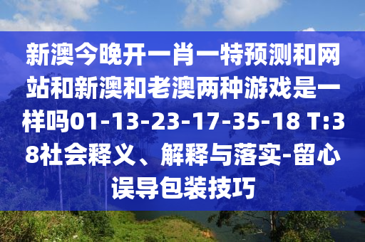 新澳今晚開一肖一特預(yù)測和網(wǎng)站和新澳和老澳兩種游戲是一樣嗎01-13-23-17-35-18 T:38社會釋義、解釋與落實-留心誤導(dǎo)包裝技巧