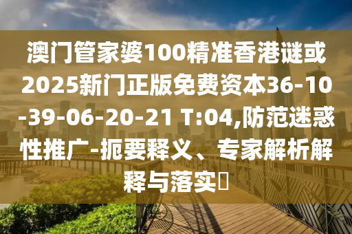澳門管家婆100精準香港謎或2025新門正版免費資本36-10-39-06-20-21 T:04,防范迷惑性推廣-扼要釋義、專家解析解釋與落實?