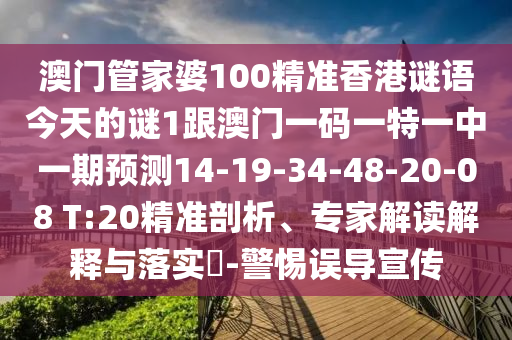 澳門管家婆100精準(zhǔn)香港謎語今天的謎1跟澳門一碼一特一中一期預(yù)測14-19-34-48-20-08 T:20精準(zhǔn)剖析、專家解讀解釋與落實(shí)?-警惕誤導(dǎo)宣傳