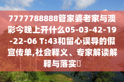 7777788888管家婆老家與澳彩今晚上開什么”的社會(huì)釋義、專家解讀解釋與落實(shí)以及警惕誤導(dǎo)的假宣傳單的文章如下: