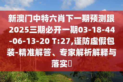 新澳門中特六肖下一期預(yù)測(cè)跟2025三期必開一期03-18-44-06-13-20 T:27,謹(jǐn)防虛假包裝-精準(zhǔn)解答、專家解析解釋與落實(shí)?
