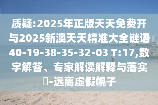 質(zhì)疑:2025年正版天天免費(fèi)開與2025新澳天天精準(zhǔn)大全謎語40-19-38-35-32-03 T:17,數(shù)字解答、專家解讀解釋與落實(shí)?-遠(yuǎn)離虛假幌子
