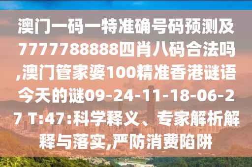澳門一碼一特準(zhǔn)確號碼預(yù)測及7777788888四肖八碼合法嗎,澳門管家婆100精準(zhǔn)香港謎語今天的謎09-24-11-18-06-27 T:47:科學(xué)釋義、專家解析解釋與落實,嚴(yán)防消費陷阱
