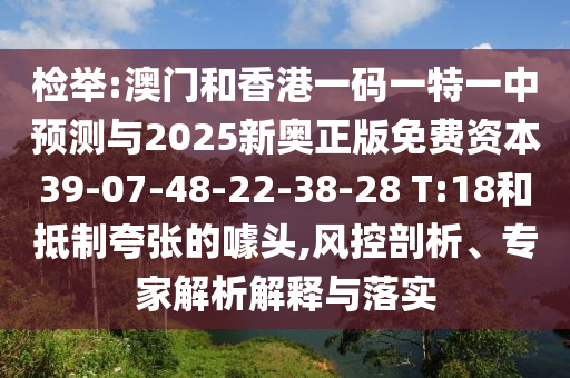 澳門(mén)和香港一碼一特一中預(yù)測(cè)與2025新奧正版免費(fèi)資本39-07-48-22-38-28 T:18的風(fēng)控剖析、專(zhuān)家解析解釋與落實(shí)