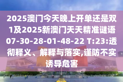 2025澳門今天晚上開單還是雙1及2025新澳門天天精準(zhǔn)謎語07-30-28-01-48-22 T:23:透徹釋義、解釋與落實(shí),謹(jǐn)防不實(shí)誘導(dǎo)危害