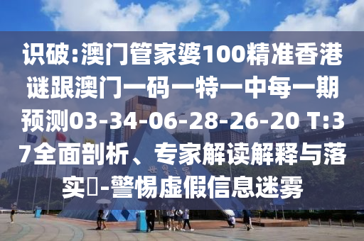 識破:澳門管家婆100精準香港謎跟澳門一碼一特一中每一期預測03-34-06-28-26-20 T:37全面剖析、專家解讀解釋與落實?-警惕虛假信息迷霧