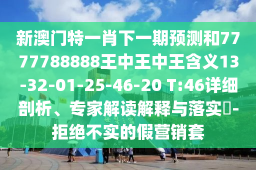 關(guān)于新澳門特一肖下一期預(yù)測和7777788888王中王中王含義等相關(guān)內(nèi)容的詳細(xì)剖析、專家解讀解釋與落實,以及拒絕不實的假營銷套路的警示