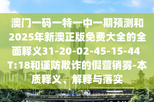 澳門一碼一特一中一期預(yù)測和2025年新澳正版免費(fèi)大全的全面釋義31-20-02-45-15-44 T:18和謹(jǐn)防欺詐的假營銷霧-本質(zhì)釋義、解釋與落實(shí)
