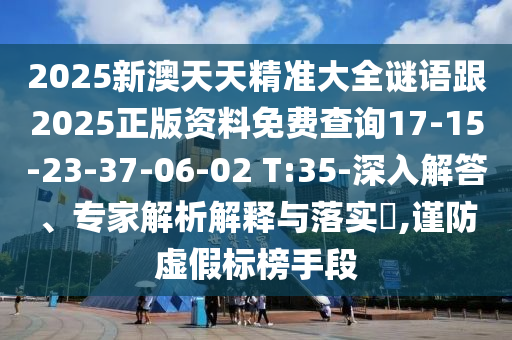 2025新澳天天精準(zhǔn)大全謎語跟2025正版資料免費(fèi)查詢17-15-23-37-06-02 T:35-深入解答、專家解析解釋與落實(shí)?,謹(jǐn)防虛假標(biāo)榜手段